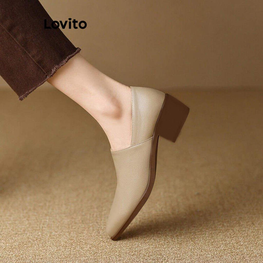 (Trendy) Lovito Mocassins Leves E Confortáveis De Couro Macio Com Temperamento Simples E Casual Para Mulheres LFA65219