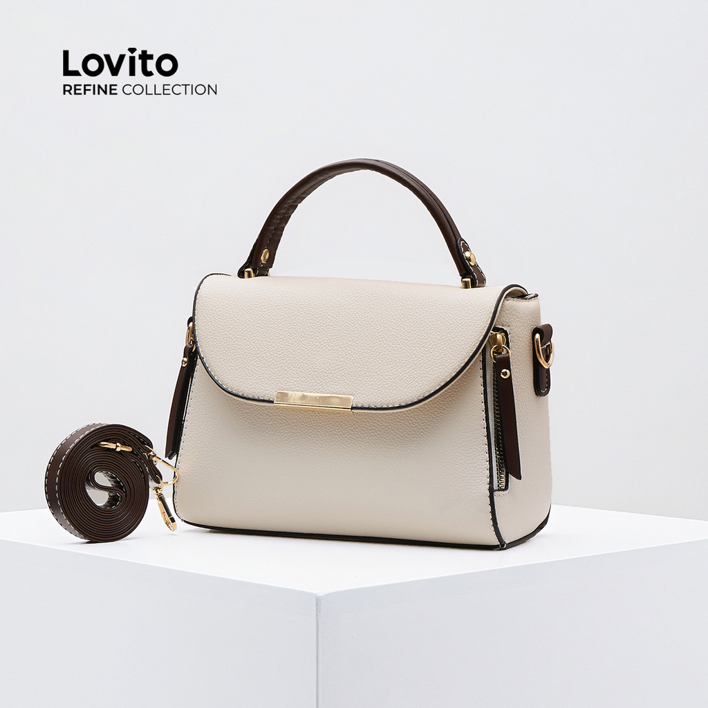 (Trendy) (Lovito Refine) Casual liso pequeno quadrado Bolsa feminina LFAR9075