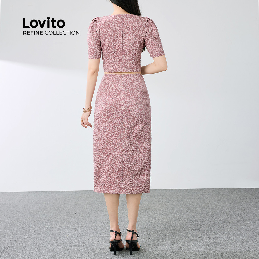(Trendy) (Lovito Refine) Conjuntos de Saia Elegante com Jacquard Botões Na Frente Primavera/verão Blusa rosa LR12E056