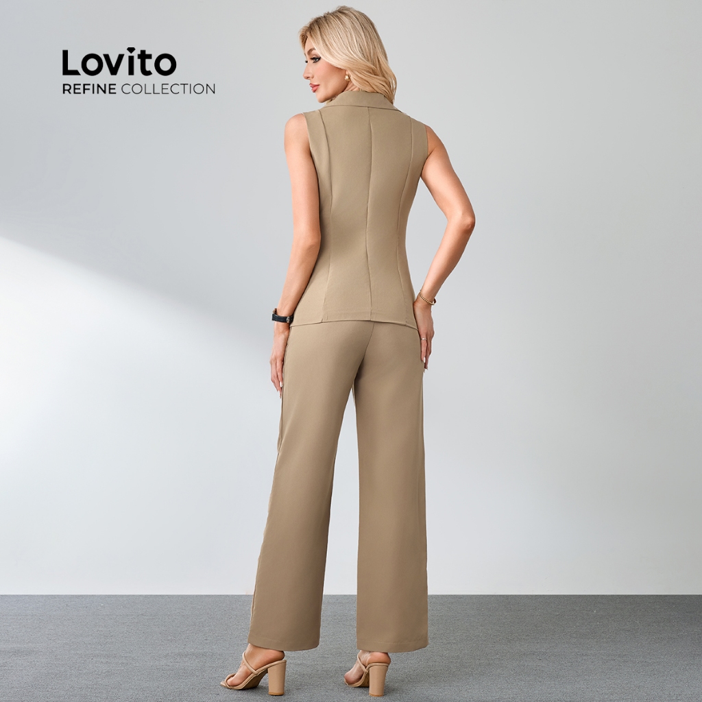 (Trendy) (Lovito Refine) Tops ou calças de bolso falso simples e elegantes para mulheres LR7LD091