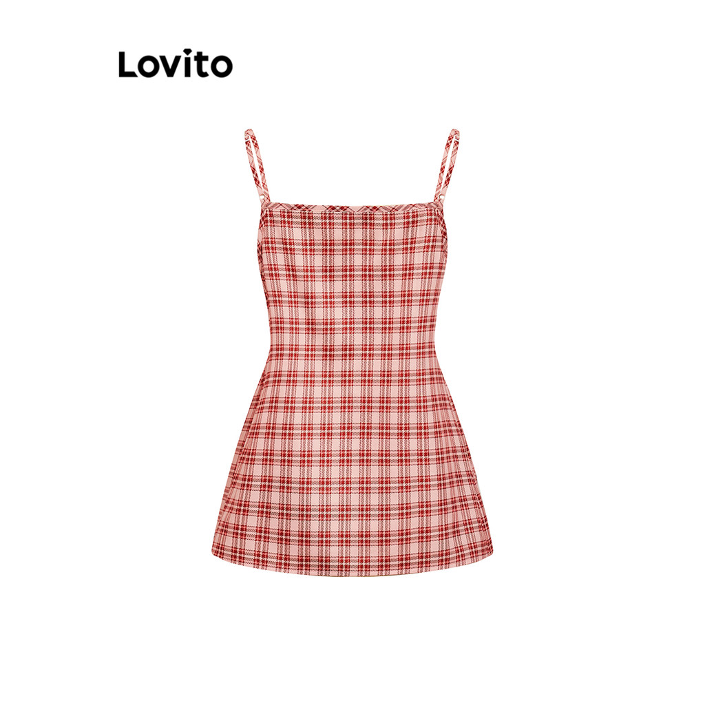 (Trendy) Lovito Regata Casual De Verão Com Botão Guingão Frontal Para Mulheres L105MD041