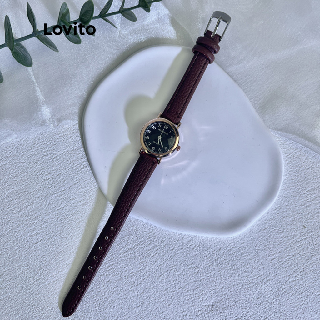 (Trendy) Lovito Relógio Digital de Quartzo Simples com Pulseira de PU para Mulheres LNA13102 (Branco/Preto)