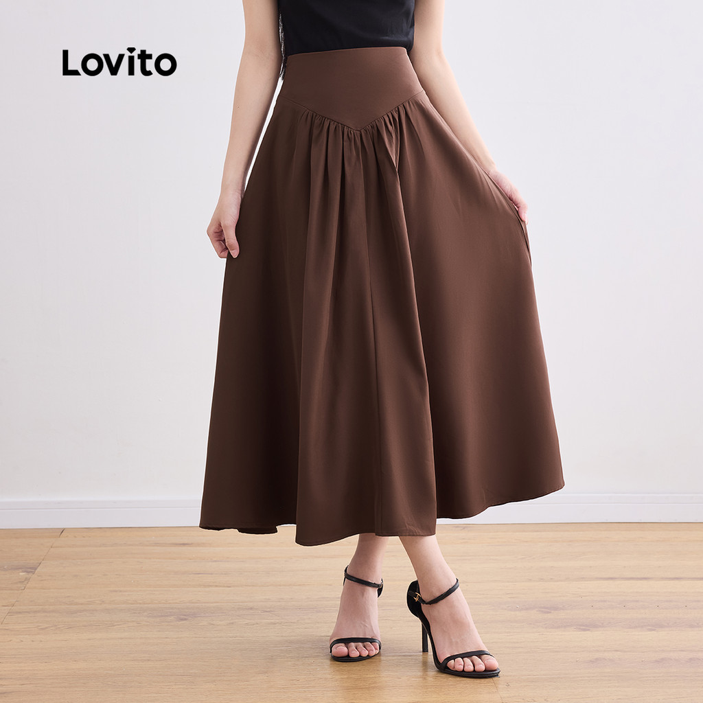 (Trendy) Lovito Saia Casual lisa com espartilho franzido para mulheres LBL24245