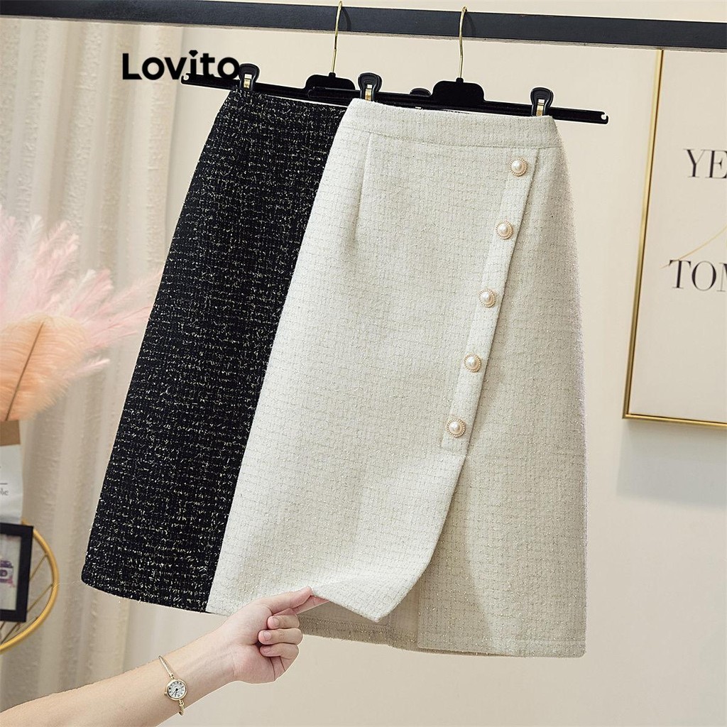 (Trendy) Lovito Saias Elegantes Com Botões Lisos E Saias Assimétricas Para Mulheres LNL51010
