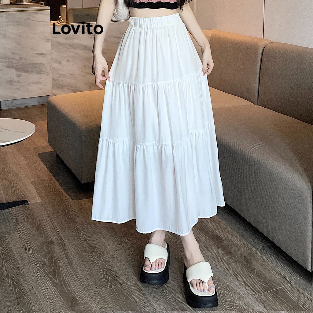 (Trendy) Lovito Saias Fofas Com Bainha Lisa E Babados Para Mulheres LNA30087 (White)