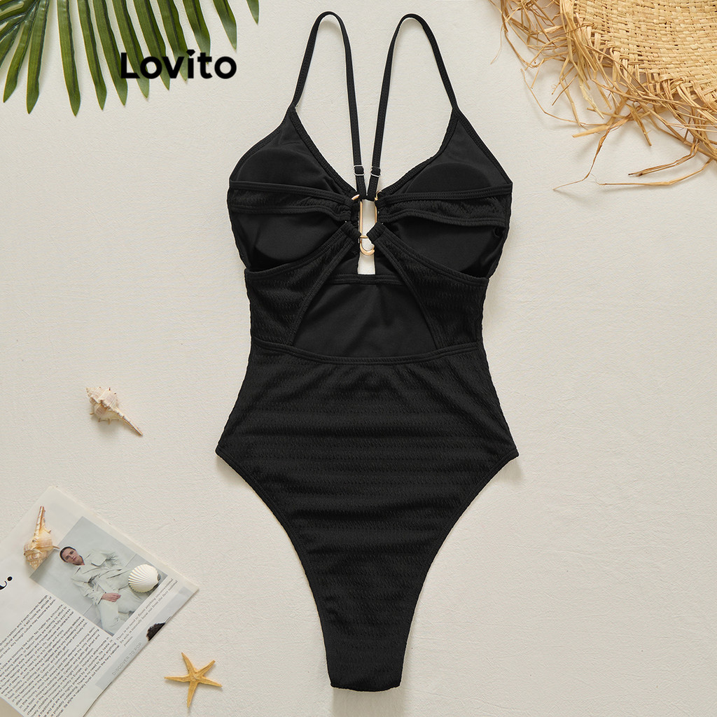 (Trendy) Lovito Sexy One Pieces Metal Recortado Verão/Primavera Uma Peça Para Mulheres LBL20675