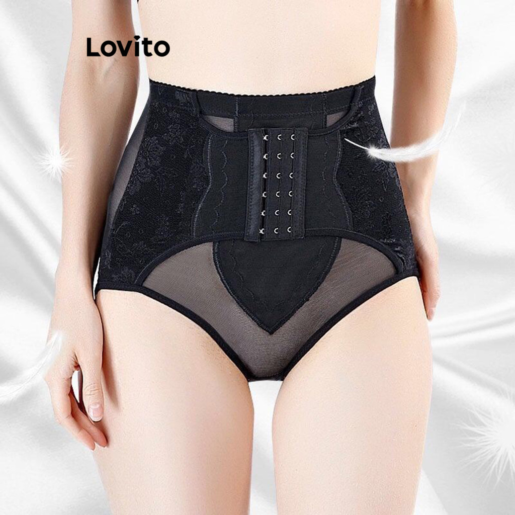 (Trendy) Lovito Shapewear Casual Com Botão Liso, Modelador Macio E Confortável Para Mulheres LNE16269 (damasco/preto)