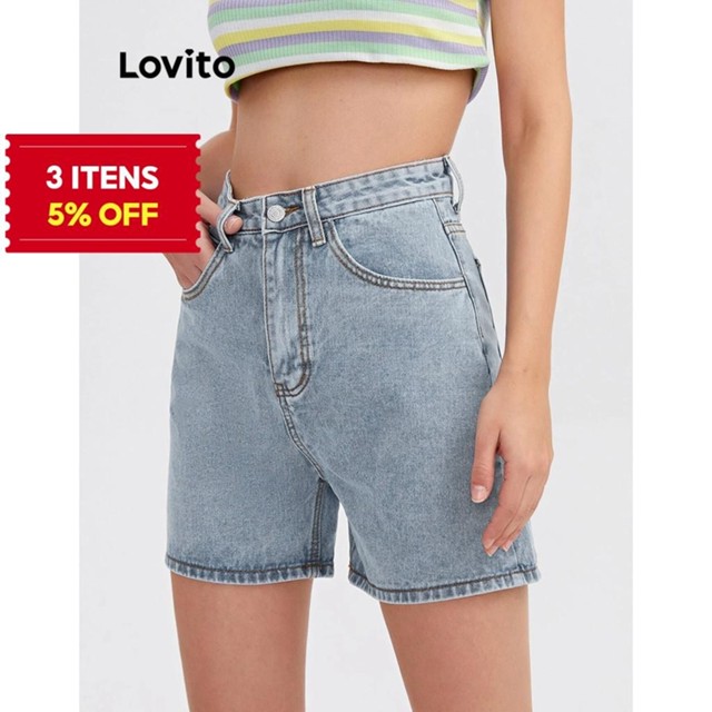 | (Trendy) Lovito Shorts Jeans Casuais Com Bolso Liso Para Mulheres L... este produto | R$ 69,20 | 26% | 5.0/5 | — |