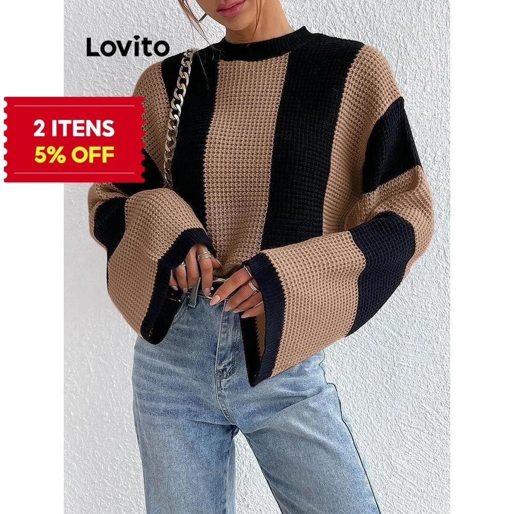 (Trendy) Lovito Suéter Casual Listrado Colorblock Para Mulheres LNL55321