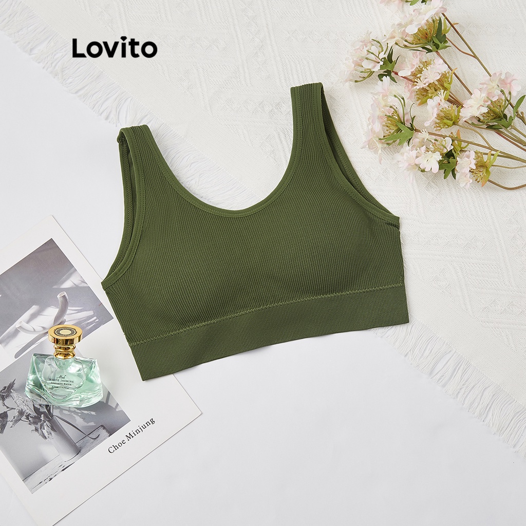 (Trendy) Lovito Sutiã Casual Liso Sem Fio Almofadas Removíveis L23LD072 (Preto/Azul/Verde)