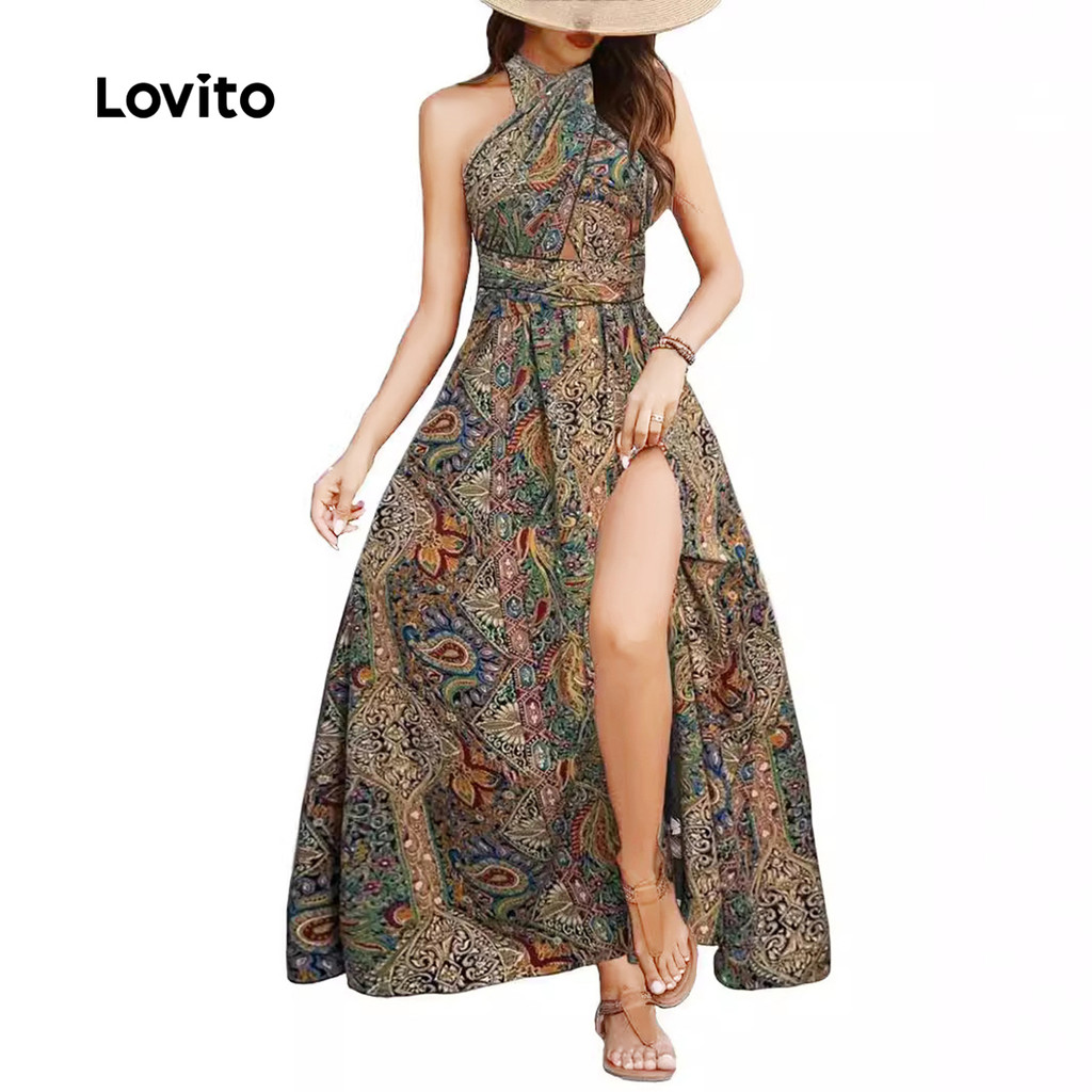 (Trendy) Lovito Vestido Boho Com Estampa Tribal Vestido De Verão/Primavera Para Mulheres LMD81103