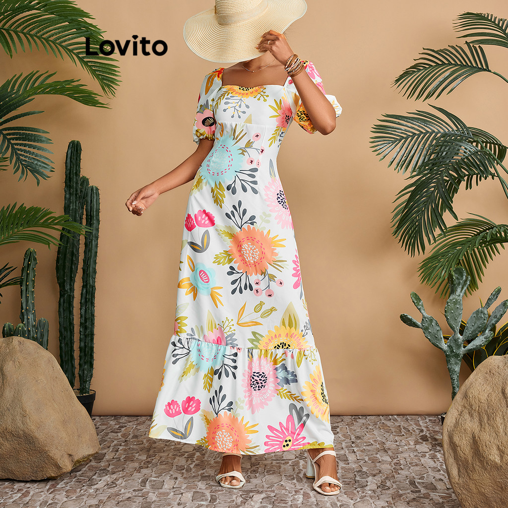 (Trendy) Lovito Vestido Boho Floral Ruffle Hem para Mulheres LBL20524