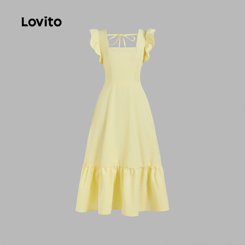 (Trendy) Lovito Vestido Boho liso com babados para mulheres L131ED733