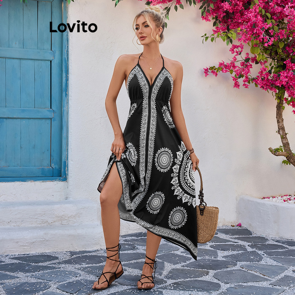 (Trendy) Lovito Vestido Com Estampa Primavera/Verão Vestido De Praia Para Mulheres LBL18742