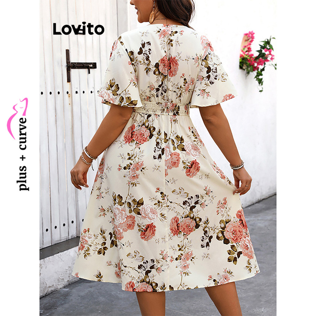 (Trendy) Lovito Vestido Curva Plus Size Elegante Vestido Com Estampa Floral Ditsy Para Mulheres LNL69102