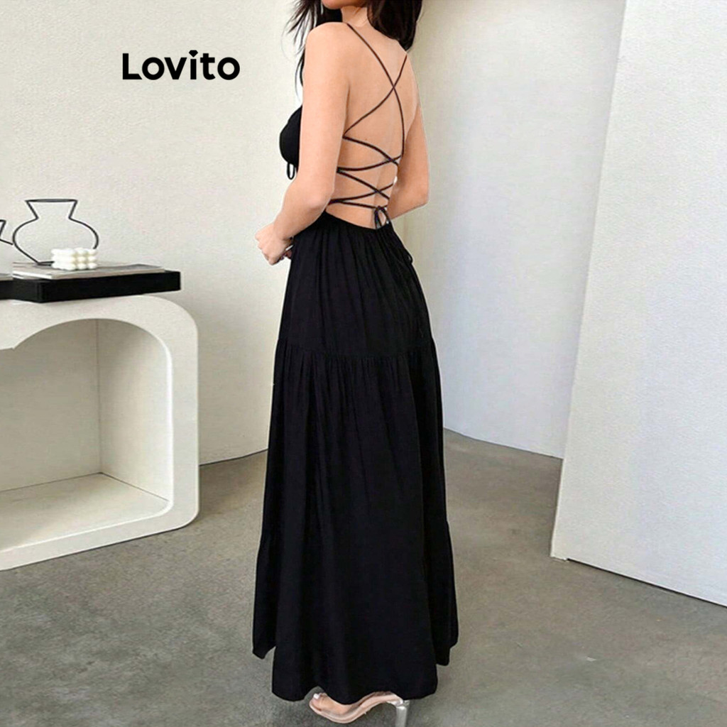 (Trendy) Lovito Vestido Elegante Com Corte Liso E Amarração Nas Costas Para Mulheres L99ED974
