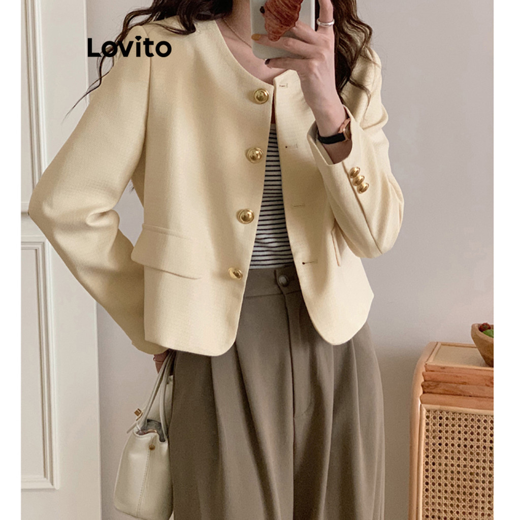 (Trendy2) Lovito Blazer De Bolso Com Botão Outono Inverno Blazer Para Mulheres LNA29388 (Multi-color)