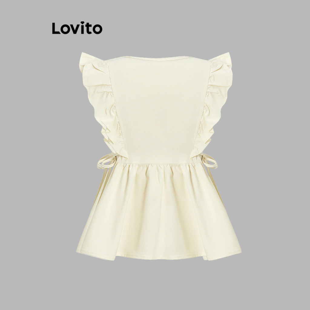 (Trendy2) Lovito Blusa Casual Lisa Com Cadarço E Acabamento Em Alface Para Mulheres L68ED004 (Multicolorido)