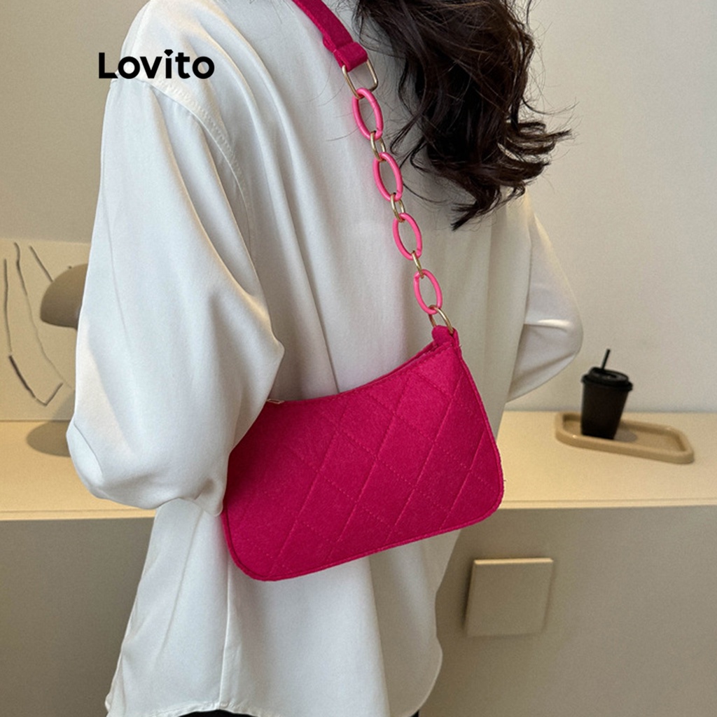 (Trendy2) Lovito Bolsa de Ombro Pequena com Corrente para Mulheres LNE09129 (Rosa Pink/Preto)