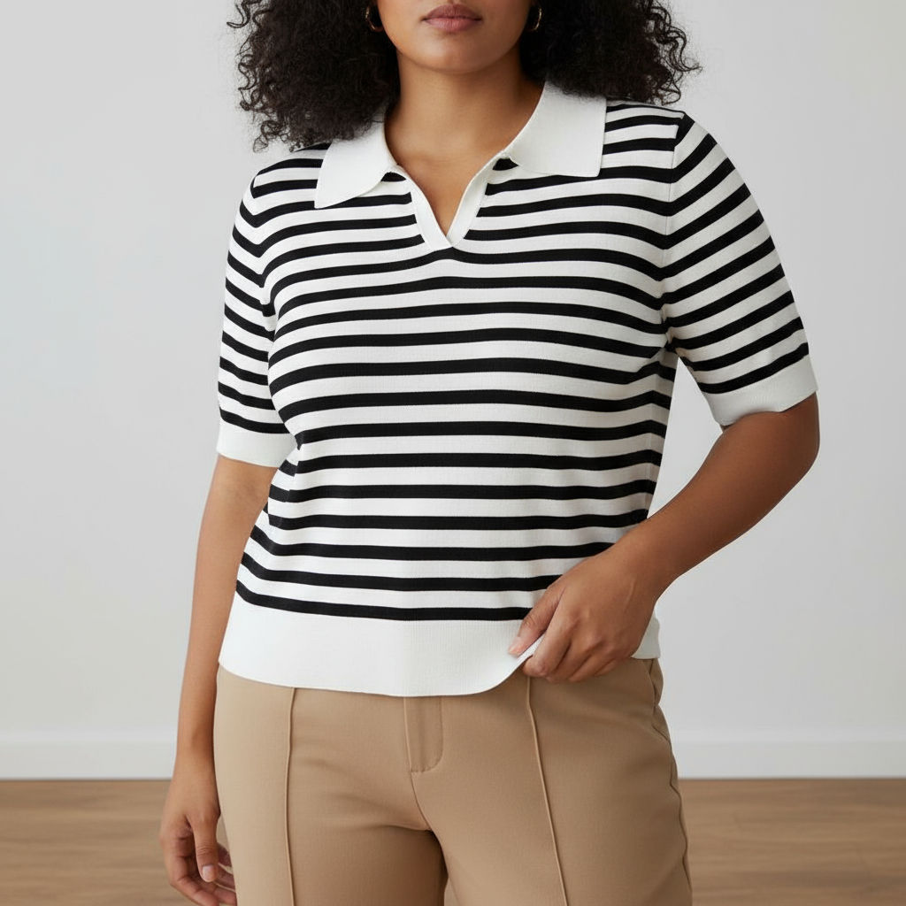 (Trendy2) Lovito Camisa Casual Plus Size Curva Listrada Colorblock Camiseta Verão/primavera Para Mulheres LBL24589