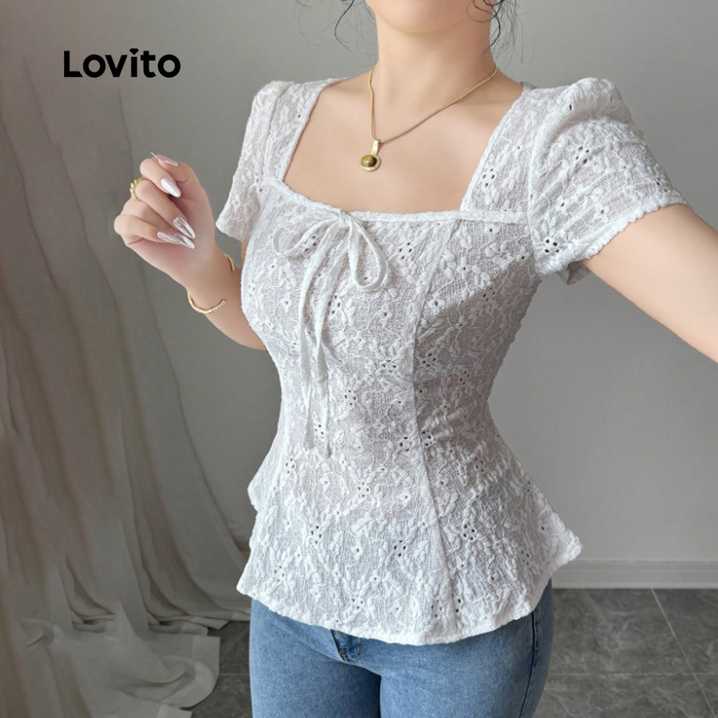 ✅DESTAQUES -❤️Jacquard -❤️Amarra a frente -❤️Boa textura -❤️Primavera e verão ✅DESCRIÇÕES Estampa / Padrão:Loiro Estilo:Elegante Tamanho Plus:Não Material:Poliéster Composição:95% Poliéster + 5% Elastano Tipo de modelagem: Ajuste Regular Transparência:Não Esticar:Leve alongamento Feito na China ✅REFERÊNCIA DE MODELAGEM A modelo está vestindo: P Altura: 165 cm Peso: 55 kg Busto: 88 cm Cintura: 68 cm Quadris: 93 cm ✅O PACOTE INCLUI 1XCamiseta ✅INTRODUÇÃO LOVITO A Lovito é uma marca em crescimento que acredita no poder das meninas. Estamos comprometidos em oferecer opções de roupas fashion e acessíveis, para todos os estilos, necessidades e identidades. Acreditamos que a moda deve ser divertida, liberadora e fazer você se sentir incrível. Afinal, o melhor acessório para qualquer look é a autoconfiança! ✅NOTAS DE COMPRA Antes de comprar, dê uma olhadinha na tabela de medidas disponível no site. Lembre-se de que, por serem feitas manualmente, as medidas podem variar de 1 a 2 cm. As cores dos produtos também podem ter pequenas diferenças em relação às fotos, dependendo da iluminação e das configurações do seu dispositivo. Siga nossa loja e conheça novos itens e as melhores ofertas para você!! Se você tiver alguma dúvida, converse conosco e responderemos o mais rápido possível.😊