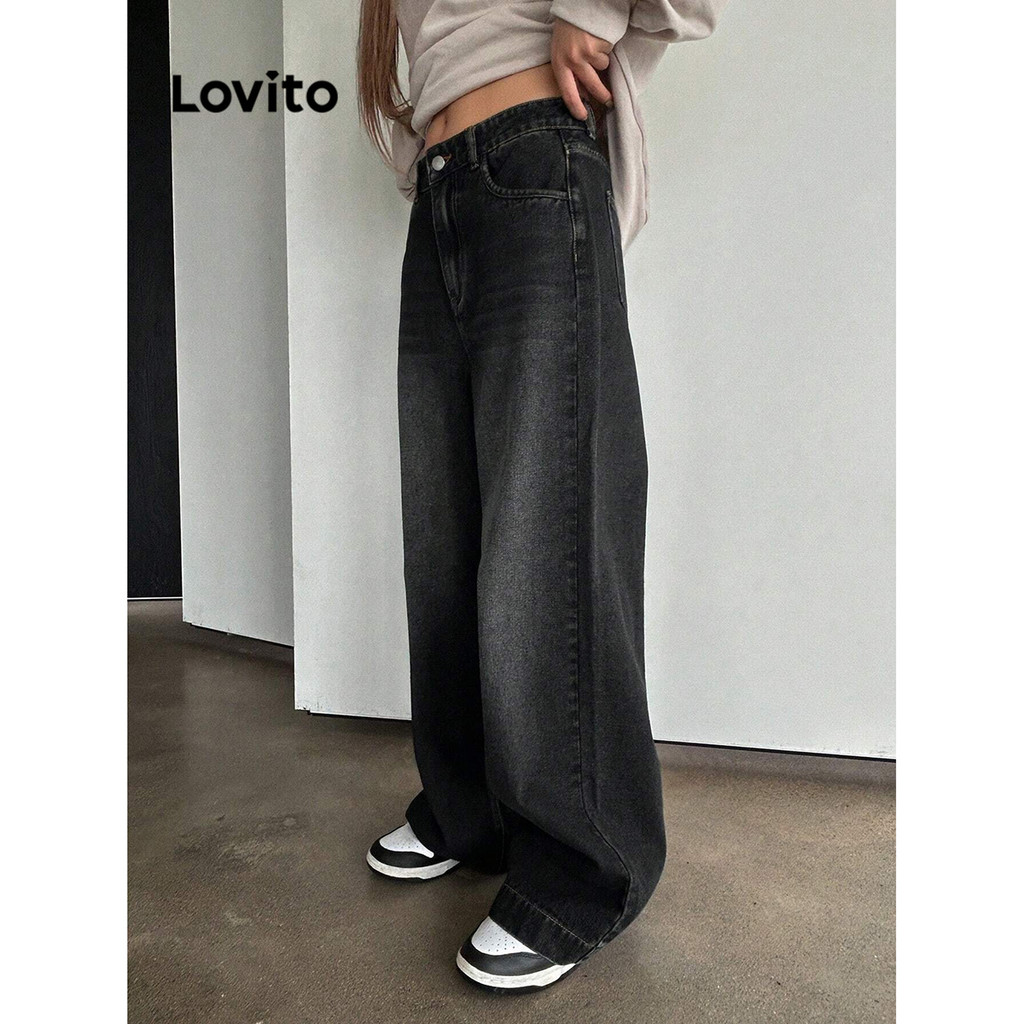 (Trendy2) Lovito Jeans Casuais Lisos Cat'S Whiskers Jeans Lavados Para Mulheres L86ED291