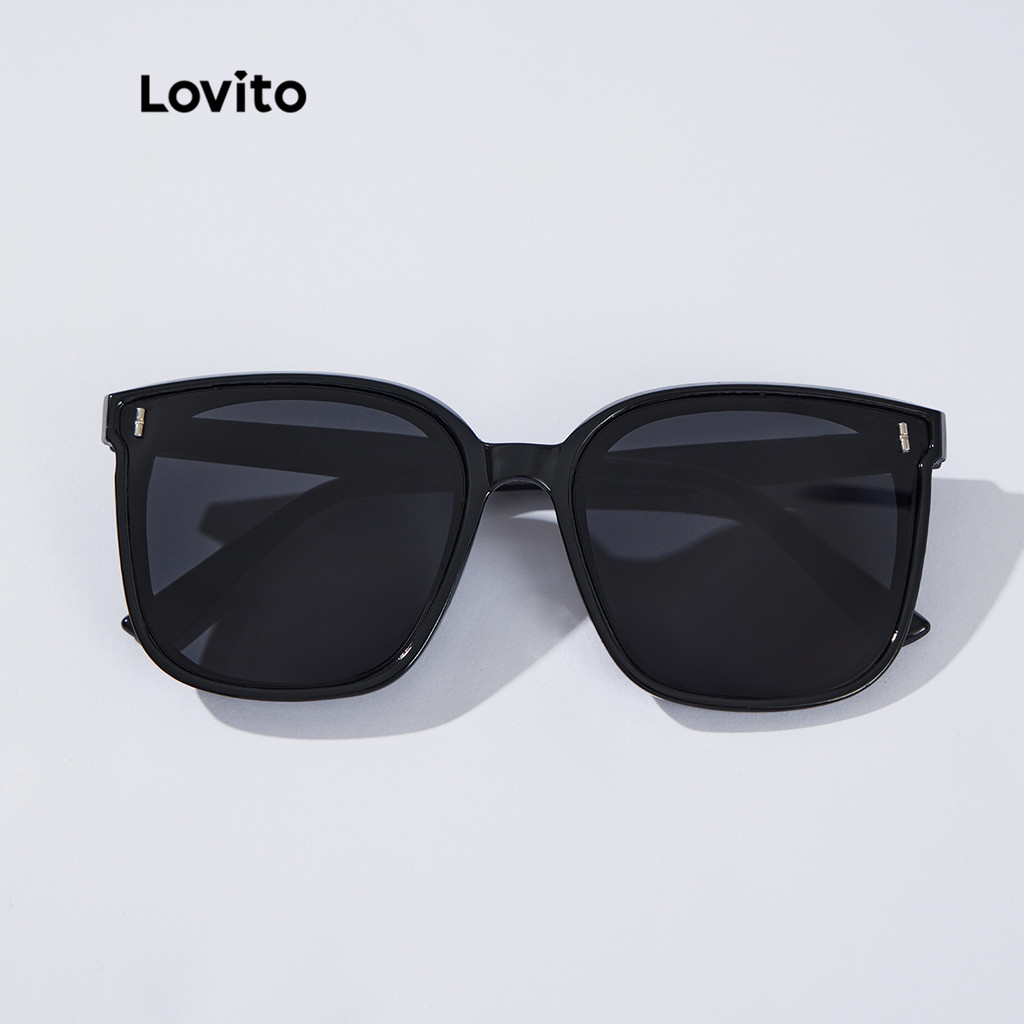 (Trendy2) Lovito Óculos De Sol Casuais Lisos, Combinados, Básicos, De Aro Completo, Para Mulheres L34AD057 (Preto)