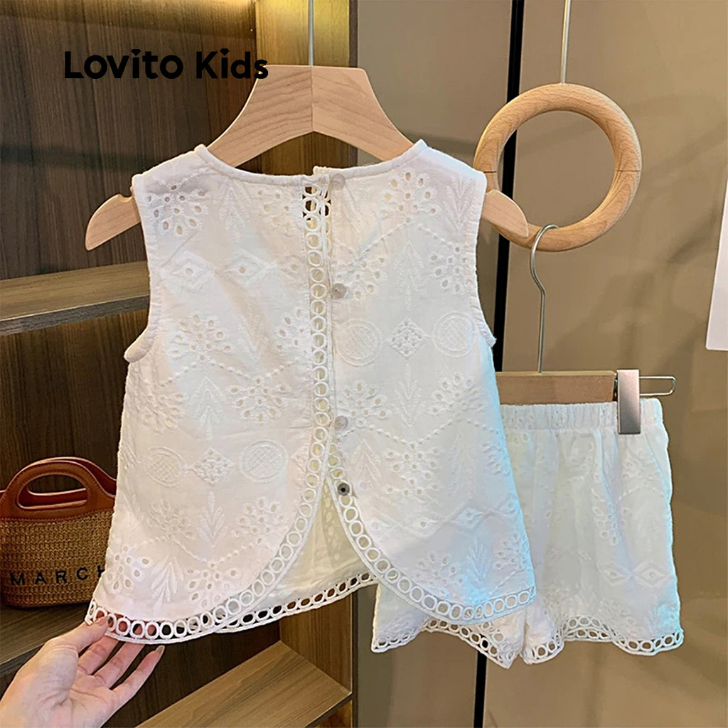 (Trendy3) Lovito Conjuntos Shorts Casuais Infantis Sem Costas Mão Suave Todas Estações Meninas LNL106077