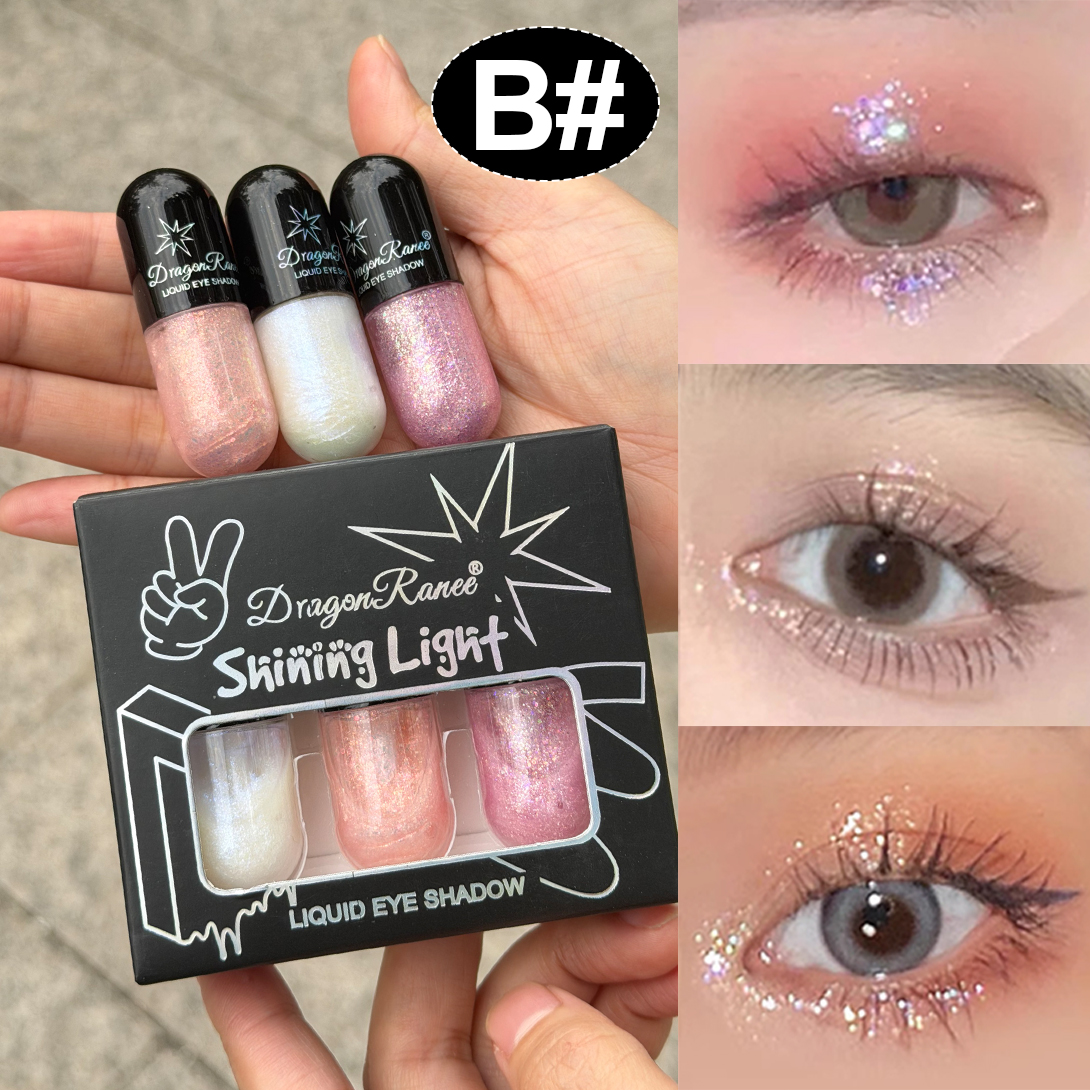 Três Estojos de Sombra Líquida para Olhos - Luz Perolada, Brilho Cristal à Prova d'Água e Glitter Líquido para Sombra