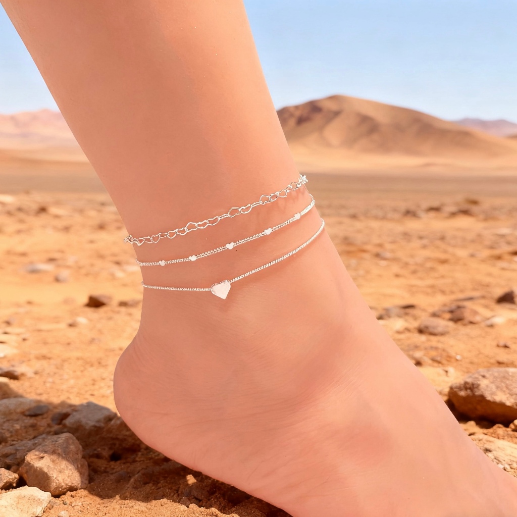 Três tornozeleiras em formato de coração para mulheres, banhadas a prata 925 ou ouro 18K