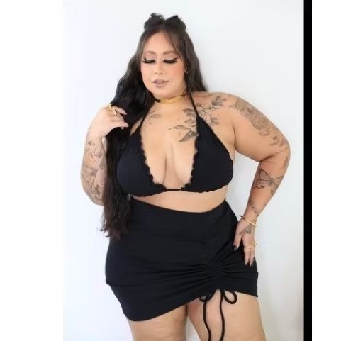 tri biquíni plus size com bojo de alta sustentação calcinha e saia esticam bastante (44 até 52) preto