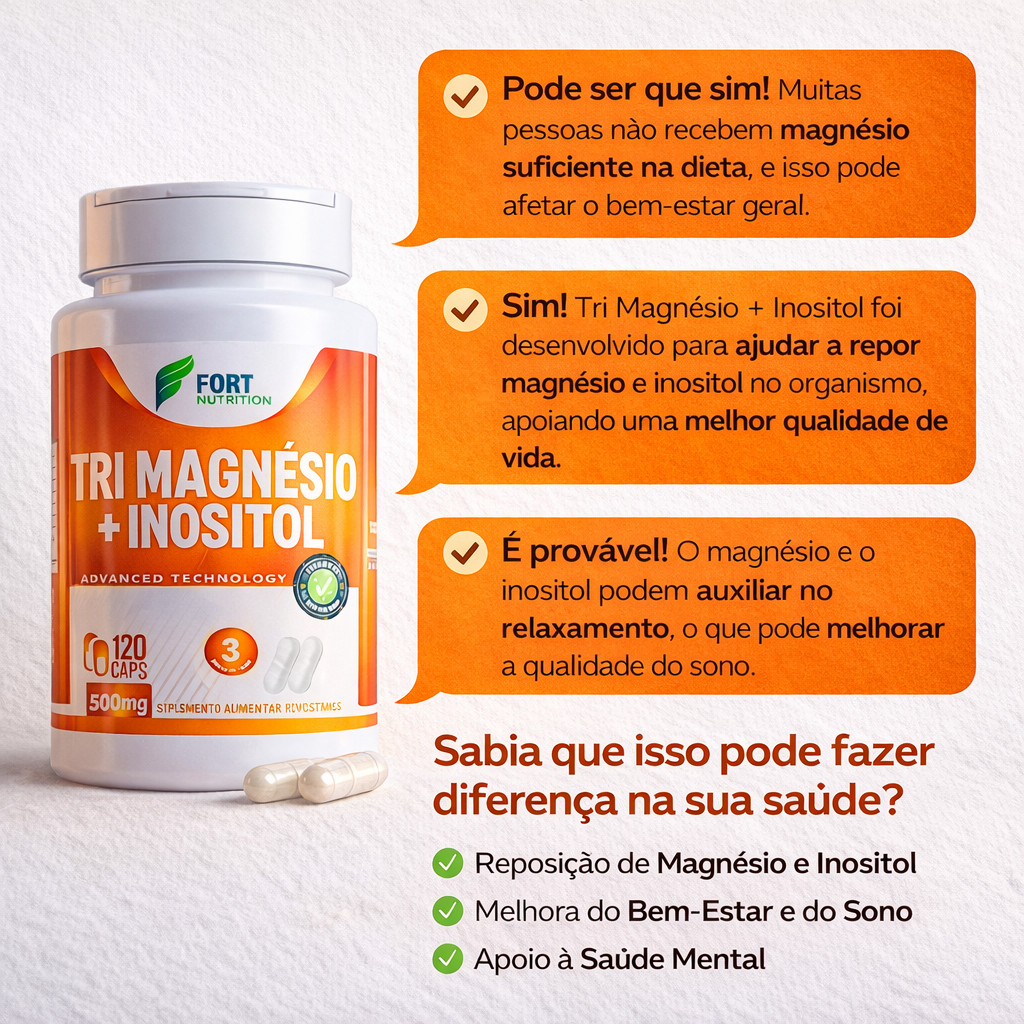 Tri Magnésio (dimalato, quelato e taurato) Inositol Relax, Vitamina B6, 120 Cápsulas