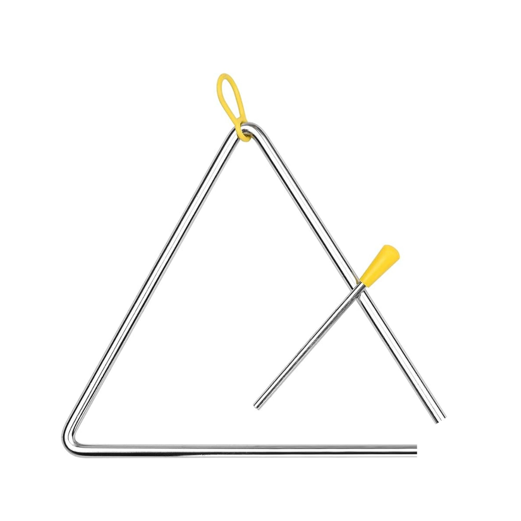 Triângulo cromado de metal com sonoridade brilhante e forte. Ideal para percussionistas que exploram ritmos nordestinos como baião, forró e xote, entre outros. Pode também ser utilizado como efeito percussivo. Produzido em metal polido, acompanha batedor. Especificações: Material: Metal Acabamento: Cromado Tamanho: 25cm Medida: 7mm Baqueta: 12,5cm Baqueta Metálica Contém: 01 Triângulo 01 Baqueta *Imagens Ilustrativas