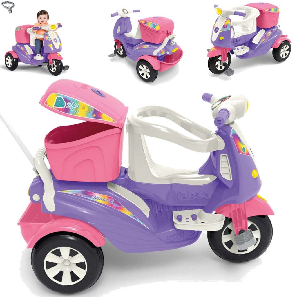 Carrinho de Passeio e Pedal para Bebes Calesita Moto Uno com Capacete Está procurando um presente perfeito para seu bebê? O Carrinho de Passeio Pedal Moto Uno da Calesita vai proporcionar muito conforto e diversão nos passeios do seu bebê! E você vai conhecer TUDO sobre este lindo brinquedo aqui na Maçã Verde Baby! Presente perfeito para bebês de 12 meses até 30kg! Quem não gosta de ganhar um presente, não é verdade? Com a Moto Uno da Calesita você não vai errar e seu bebê terá um brinquedo que vai durar por muuuito tempo! A Moto Uno da Calesita é um brinquedo 2 em 1 que acompanha o crescimento do bebê e pode ser utilizado desde os 12 meses de idade até 30kg! Ele pode ser utilizado para passeios ou na função de pedal. Função passeio: empurrador, proteção e muita diversão a bordo da Moto Uno Para os bebês de 1 aninho que ainda não conseguem pedalar sozinhos, você pode utilizar a função passeio. O brinquedo possui aro de proteção para evitar que o bebê caia ou se desequilibre no brinquedo. Com o assoalho de proteção. os pézinhos não vão bater nos pedais e o empurrador vai ajudar você a conduzir o brinquedo durante os passeios. A diversão é garantida para os pequenos! O empurrador do Carrinho de Passeio Moto Uno da Calesita possui um suporte para carregar a bolsa. Acredite: isso vai facilitar muito durante os passeios!! Função pedal: as aventuras vão ficar mais divertidas! E quando seu bebê crescer, a Moto Uno da Calesita poderá ser usada na função pedal, sem o empurrador! A própria criança poderá controlar o brinquedo utilizando os pedais e o volante da Moto Uno! A Moto Uno conta ainda com buzina e sons! É um brinquedo completo, uma ótima escolha que vai marcar a infância do seu bebê! Cores e modelos disponíveis A Moto Uno da Calesita é muito lindo, não é verdade? Ele tem detalhes incríveis para imitar um veículo off-road, encantando as crianças! O Triciclo de Passeio e Pedal Moto Uno da Calesita está disponível nas cores rosa e azul. A Calesita desenvolveu também a Moto Duo, com dois lugares em cor única laranja e verde. Ele serve tanto para meninos, quanto para meninas! Gostou? Aproveite e garanta agora mesmo o seu Carrinho Passeio e Pedal Moto Uno da Calesita aqui na Maçã Verde Baby! Ficamos no aguardo de sua compra! Neste anúncio especial da Maçã Verde Baby, você vai levar: - 1 (um) Carrinho de Passeio Pedal Calesita Moto Uno Rosa - 1 (um) Capacete de Brinquedo Quer saber mais detalhes sobre a incrível Moto Uno de passeio e pedal da Calesita? Carrinho Pedal e Passeio Calesita Moto Uno 12+ meses Prepare-se! A aventura sobre três rodas vai começar! Os pequeninos irão acelerar rumo a diversão com a nova moto da Calesita. A Moto Uno é um triciclo dois em um, para passear ou pedalar. Vem com bauzinho para guardar brinquedos, farol que acende e som divertido para estimular a imaginação. Na versão passeio acompanha o empurrador, aro protetor e apoio de pés removível, fácil de encaixar. E para sair pedalando, basta retirar os acessórios. Então a moto está pronta para que os pequeninos explorem o passeio e sintam no rosto o vento com a Moto Uno. Calesita, brincadeira de verdade. Contém: 1 Moto Uno 1 Haste/Empurrador 1 Suporte para bolsa 1 Aro Protetor 1 Par de Apoio de Pés 1 Manual de Instruções Habilidades desenvolvidas: Compreensão de causa e efeito, Coordenação entre olhos e pés, Coordenação motora fina – mãos e dedos, Curiosidade e descoberta, Habilidades Sensoriais 2 em 1: acompanha o crescimento do bebê Função passeio: empurrador com suporte para bolsa para os pais controlarem o brinquedo. Pode ser instalado com aro de proteção. Função pedal: basta remover o assoalho, o empurrador e o aro de proteção. A própria criança controlará a direção do brinquedo e os pedais. Passeio: direção e rodas guiadas pelo empurrador Pedal: rodas com borracha para não derrapar Espaço para guardar brinquedos Apoio de pé removível Encaixe e desencaixe o empurrador com praticidade Suporte para bolsa Sons e luzes Rodas com borracha Cinto de segurança Farol acende ao acionar o som Acompanha 1 capacete de brinquedo Idade recomendada: 1 a 3 anos Peso máximo suportado: 30kg Composição: Polietileno, plástico, metal e borracha Medidas da Moto Uno da Calesita: - Com haste: Altura 92 cm x Largura 58 cm x Comprimento 102 cm - Sem haste: Altura 66 cm x Largura 58 cm x Comprimento 102 cm Peso 6,55 kg Certificado de Registro INMETRO nº 002093/2021 Produto novo, original, lacrado com nota fiscal e certificado de garantia de fábrica válido por 3 (três) meses! Aproveite e garanta agora mesmo o seu aqui Carrinho de Passeio e Pedal para Bebe Calesita Moto Uno Azul na Maçã Verde Baby! Ficamos no aguardo de sua compra!