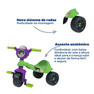Triciclo Infantil 1 a 3 anos - Suporta 16kg - Empurrador e Pedal - Inmetro - Motoca Velotrol Herói
