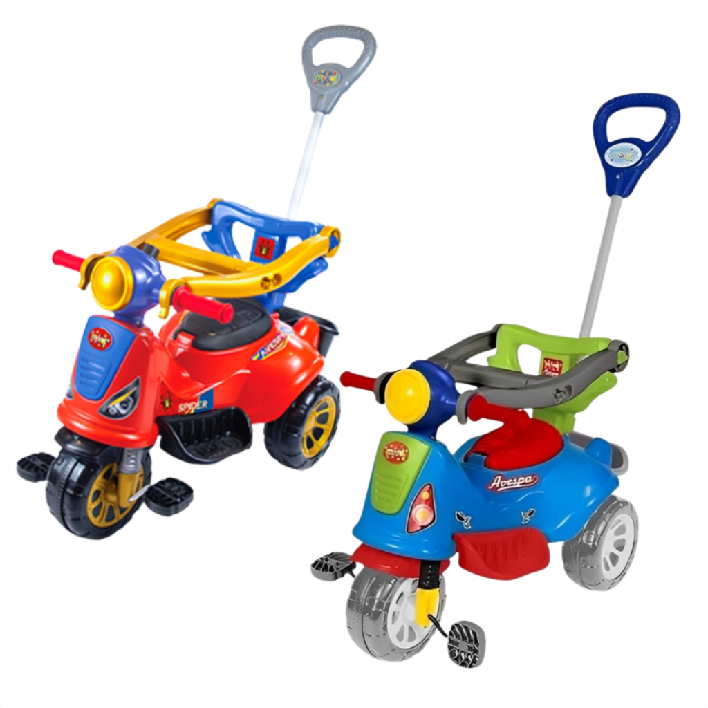 O anúncio contém: 01 Triciclo Avespa. Um triciclo inspirado no estilo clássico, no modelo Retrô. Multifuncional, pode ser utilizado nas funções Passeio ou Pedal. Na função Passeio, o adulto empurra o carrinho através da haste, ela é metálica e de fácil remoção. Tem 01 gancho super prático para pendurar uma bolsa ou sacola até 1,5 kg. Com anel de Proteção removível. Guidão com punhos emborrachados e buzina. Divirta-se! Benefícios: Estimula a Interação Entre Pais e Filhos, desenvolve a distinção de formas e cores, a comunicação, a coordenação motora, a interação social e cultural...brincando desenvolve-se a criança num todo! Informações: Idade Mínima Recomendada Pelo Fabricante: +12 meses (Passeio) / +24 meses (Pedal) Dimensões Aproximadas da Embalagem (AxLxC): 32cm x 41,5cm x 60cm Dimensões Aproximadas do Produto (AxLxC): 51cmx41cmx76cm Peso Máximo Suportado: 25Kg Material: Plástico Som: Não Luz: Não Com Apoio para Pés: Sim Funções: Pedal e Passeio Haste: Não direcionável Com Suporte para Sacola: Sim Com Proteção: Sim Fabricante: Maral Brinquedos. - Produto novo e em estoque; - As cores do tecido ou produto podem varias de acordo com o lote de fabricação; - Todos os produtos têm seguro contra extravio.