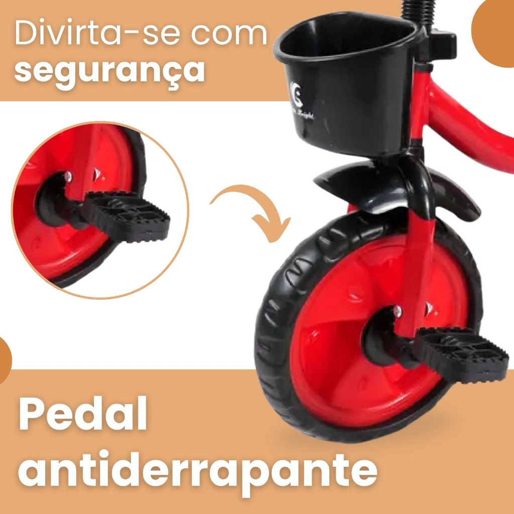 TRICICLO INFANTIL COM PEDAL – ATENTU O Triciclo Infantil com Pedal da Atentu é ideal para estimular o equilíbrio, a coordenação motora e a autonomia das crianças. Com estrutura reforçada em plástico PP e aço, o brinquedo é seguro, durável e pensado para proporcionar momentos de diversão ao ar livre. Equipado com pedal antiderrapante e três rodas robustas, oferece mais estabilidade para os pequenos durante os passeios. Seu design clássico, sem alça, garante liberdade para que a criança pedale com independência e confiança. ESPECIFICAÇÕES: - Triciclo com pedal - 3 rodas para maior estabilidade - Design clássico e resistente - Estrutura em plástico e aço - Idade recomendada: 3-6 anos - Altura recomendada: 80-110cm - Sem alça ou empurrador - Peso máximo suportado: 35 Kg - Indicado para uso livre e recreativo CONTEÚDO DA EMBALAGEM: - 1 Triciclo Infantil desmontado - Manual de montagem MEDIDAS DO PRODUTO: - 70 x 43 x 55 cm (C x L x A) IMPORTANTE: Garantia: 3 meses a partir da data de recebimento – para defeitos de fabricação (não cobrimos mau uso) Todos os direitos reservados Em caso de cópia desta descrição e imagens, os responsáveis serão cobrados de acordo com a Lei (9.610/98) de Direitos Autorais.