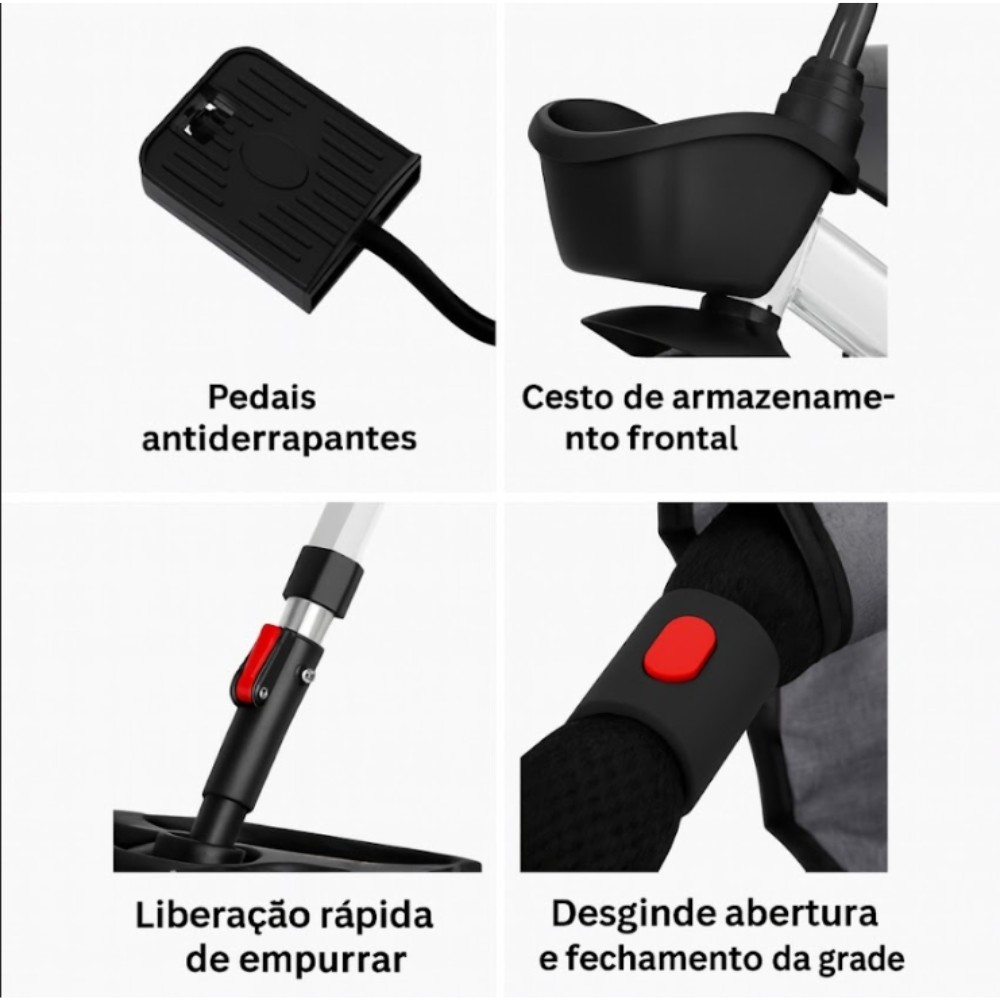 O Triciclo Infantil Deend 250484 combina conforto, segurança e praticidade para acompanhar o crescimento da criança em diferentes fases. Sua estrutura em aço carbono de alta resistência garante durabilidade, enquanto o assento giratório de 360° permite aos pais ajustarem facilmente a posição do bebê para frente ou para trás. O design moderno inclui dossel retrátil, apoio de pés removível e barra de empurrar ajustável, proporcionando uma condução segura e confortável tanto para os pais quanto para a criança. O triciclo possui pedais antiderrapantes, cesto de armazenamento frontal, suporte para copo e sistema de liberação rápida para empurrar. É ideal para passeios, estimulando o equilíbrio e a coordenação motora desde cedo, além de oferecer praticidade no dia a dia. Características: Marca: Deend Modelo: D250484 Material da estrutura: Aço carbono de alta resistência Rotação do assento: 360° Rodas: Dianteira 11" + Traseira 9" Peso bruto/líquido: 10,6 kg / 9,4 kg Cores disponíveis: Cinza, Roxo, Vermelho e Verde Dimensões do produto: 85 × 52 × 55 cm Dimensões da embalagem: 61 × 39 × 31 cm Benefícios: Assento giratório que facilita o posicionamento do bebê Estrutura reforçada e segura para maior durabilidade Barra de empurrar ajustável e apoio de pés removível Cesto frontal para pequenos objetos e suporte para copo Design moderno e confortável para passeios agradáveis