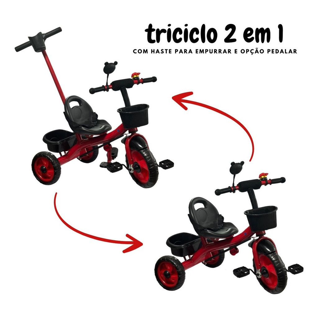 Triciclo Infantil Motoca Com Empurrador Passeio Diversao Vermelho Importway