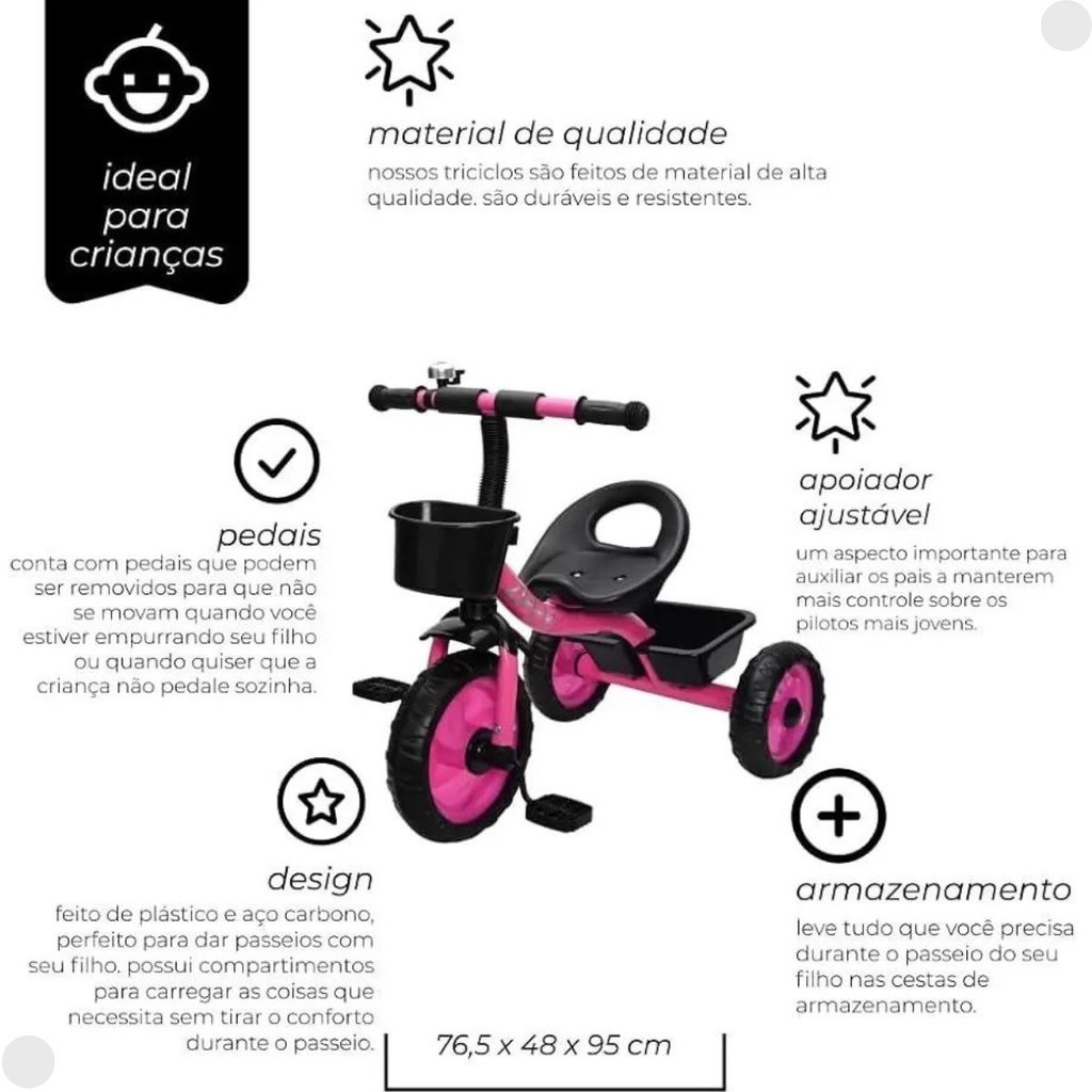 Triciclo Infantil Rosa C/duas Cestinhas Até 25 Kg 7628 - Zippy Toys