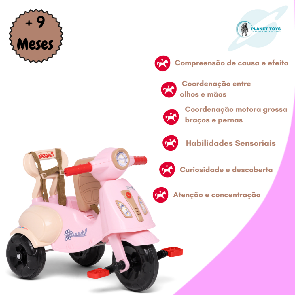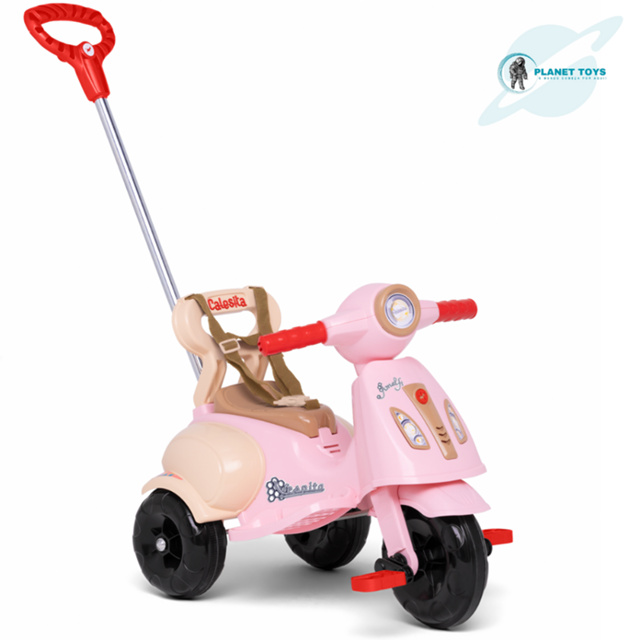 Triciclo Infantil Vespita Velotrol Motoca C/ Buzina Com Haste Empurrador e Proteção Lateral Calesita