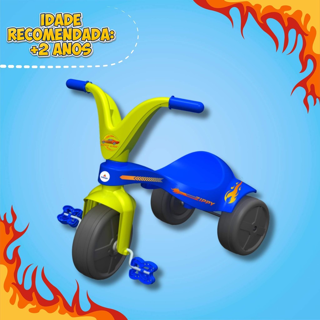 Triciclo Infantil Zippy Car Azul Xalingo Velotrol Criança Esporte Diversão Bebê Patinete