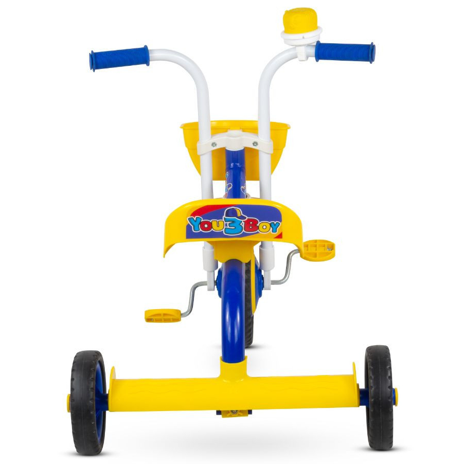 O triciclo infantil é indicado para crianças a partir de 18 meses com a supervisão de um adulto e entre 85cm e 100cm. Diversão garantida para os pequenos! - O triciclo Nathor tem quadro, garfo e guidão em alumínio, por isso é super leve (pesa só 2kg) e garante mais durabilidade (não enferruja). - Seus pneus em E.V.A. são silenciosos, menos escorregadios, mais leves e duráveis. - Para evitar acidentes, o triciclo infantil Nathor ainda conta com limitador de giro do guidão, mecanismo que impede que a criança consiga virar demais o guidão e, consequentemente, se desequilibrar. - As manoplas são fabricadas em material atóxico e com buzina, faz a brincadeira ficar ainda mais animada! Características: MODELO: YOU 3 Altura recomendada 85 à 100 cm Peso máximo recomendado 21 kg Quadro, garfo e guidão em alumínio Pneus em EVA Buzina: Sim manoplas em elastômero TPE Acompanha cestinha Dimensões do produto: Altura: 52 cm Largura: 46 cm Profundidade: 64 cm Peso: 2,18 Kg Garantia do Fabricante: 3 meses