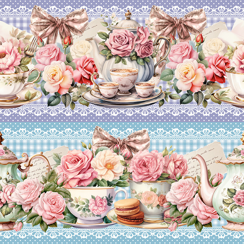 Tricoline Digital Barrado Chá Romântico, 50cm x 1,50mt