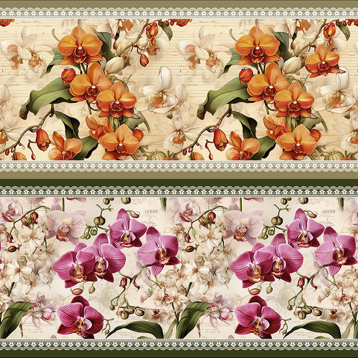 Tricoline Digital Barrado Orquídeas, 100%Algod. 50cm x 1,50m