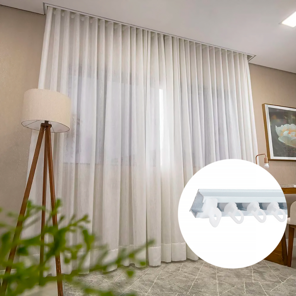 Trilho Alumínio Suíço Max Simples Cortina Branco Cortineiro Varão 1m/1,5m/2m/2,5m/3m/3,5m/4m/5m/6