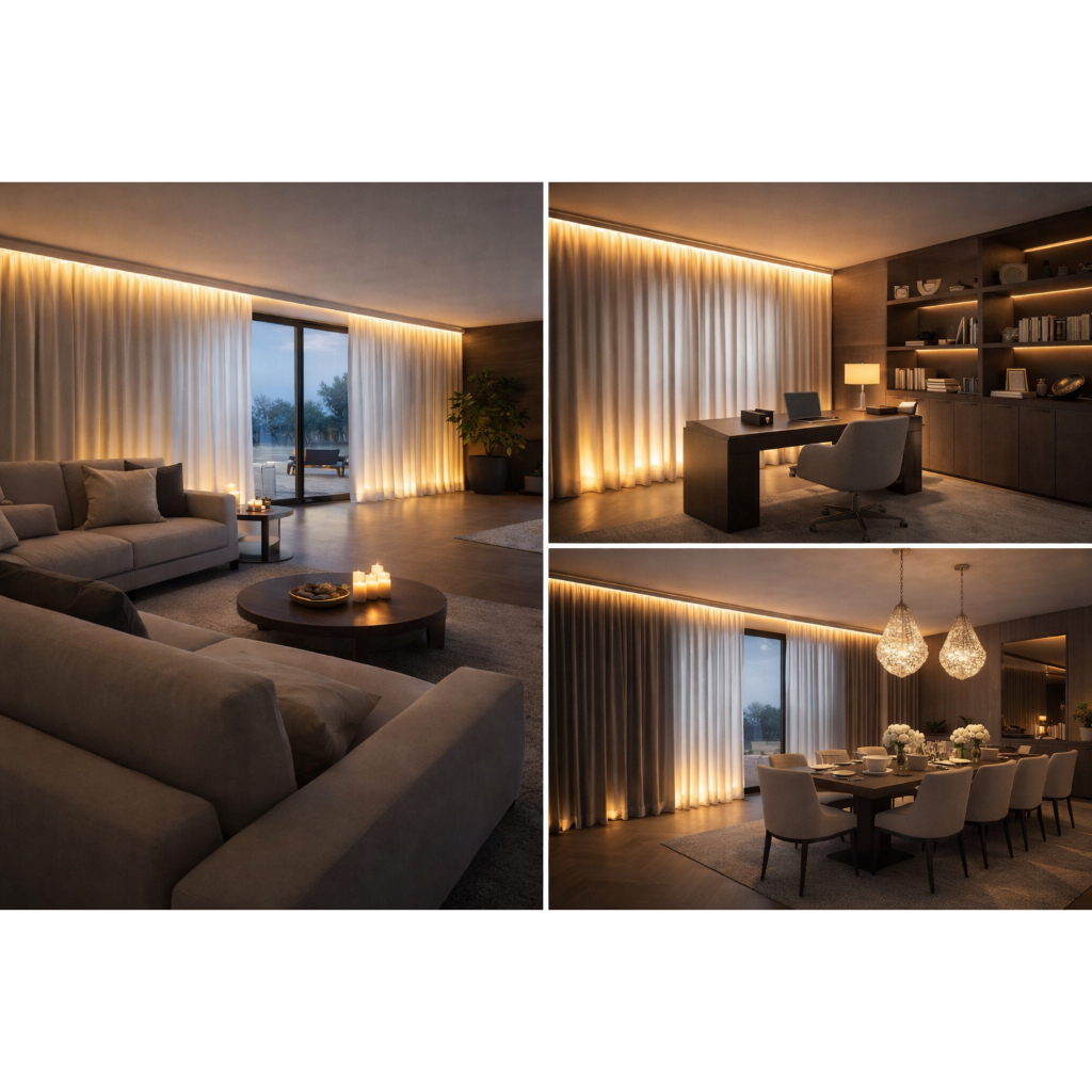 TRILHO MAX 1 GUIA COM ESPAÇO PARA LED – TRANSFORME SEU AMBIENTE O Trilho MAX 1 Guia com Espaço para LED é a solução ideal para quem busca um acabamento moderno e sofisticado para cortinas. Seu design permite a instalação de fita LED embutida, criando uma iluminação indireta elegante, valorizando a cortina e deixando o ambiente muito mais aconchegante. Ideal para salas, quartos, varandas e projetos de decoração moderna. ✔ Design moderno e elegante ✔ Estrutura resistente em alumínio ✔ Deslizamento suave da cortina ✔ Espaço para instalação de fita LED ✔ Ideal para projetos de decoração e arquitetura ⚠️ IMPORTANTE: A FITA DE LED NÃO ACOMPANHA O PRODUTO. O trilho possui apenas o espaço para instalação da fita LED, que deve ser adquirida separadamente. 📦 PERFIS ENVIADOS ⚠️ Todos os perfis são enviados cortados em barras de 1 metro, para facilitar o transporte. Os kits são enviados com deslizantes e terminais de parada, prontos para instalação. 📦 CONTEÚDO DOS KITS KIT 1 METRO • 1 barra de 1 metro de Trilho MAX 1 Guia com espaço para LED • 20 deslizantes para cortina • 2 terminais de parada KIT 1,5 METROS • 1 barra de 1 metro + 1 barra de 0,50 metro • 20 deslizantes para cortina • 2 terminais de parada KIT 2 METROS • 2 barras de 1 metro • 20 deslizantes para cortina • 2 terminais de parada KIT 2,5 METROS • 2 barras de 1 metro + 1 barra de 0,50 metro • 30 deslizantes para cortina • 2 terminais de parada KIT 3 METROS • 3 barras de 1 metro • 30 deslizantes para cortina • 2 terminais de parada KIT 3,5 METROS • 3 barras de 1 metro + 1 barra de 0,50 metro • 40 deslizantes para cortina • 2 terminais de parada KIT 4 METROS • 4 barras de 1 metro • 40 deslizantes para cortina • 4 terminais de parada KIT 4,5 METROS • 4 barras de 1 metro + 1 barra de 0,50 metro • 50 deslizantes para cortina • 4 terminais de parada KIT 5 METROS • 5 barras de 1 metro • 50 deslizantes para cortina • 4 terminais de parada KIT 5,5 METROS • 5 barras de 1 metro + 1 barra de 0,50 metro • 60 deslizantes para cortina • 4 terminais de parada KIT 6 METROS • 6 barras de 1 metro • 60 deslizantes para cortina • 6 terminais de parada 🚚 TODAS AS MEDIDAS DISPONÍVEIS À PRONTA ENTREGA 📦 Despachamos os pedidos em até 24 horas ⚠️ IMPORTANTE O kit não acompanha parafusos e buchas de fixação, pois cada tipo de teto (laje, gesso, drywall ou madeira) exige fixadores específicos. 📏 COMO ESCOLHER O TAMANHO DO TRILHO Para janelas, recomenda-se deixar aproximadamente 10 cm para cada lado da janela, permitindo melhor abertura da cortina. Caso a cortina cubra toda a parede, utilize a medida total da parede. 💡 Dica: Com a instalação de fita LED no trilho, você cria uma iluminação indireta elegante, muito utilizada em projetos de arquitetura moderna.
