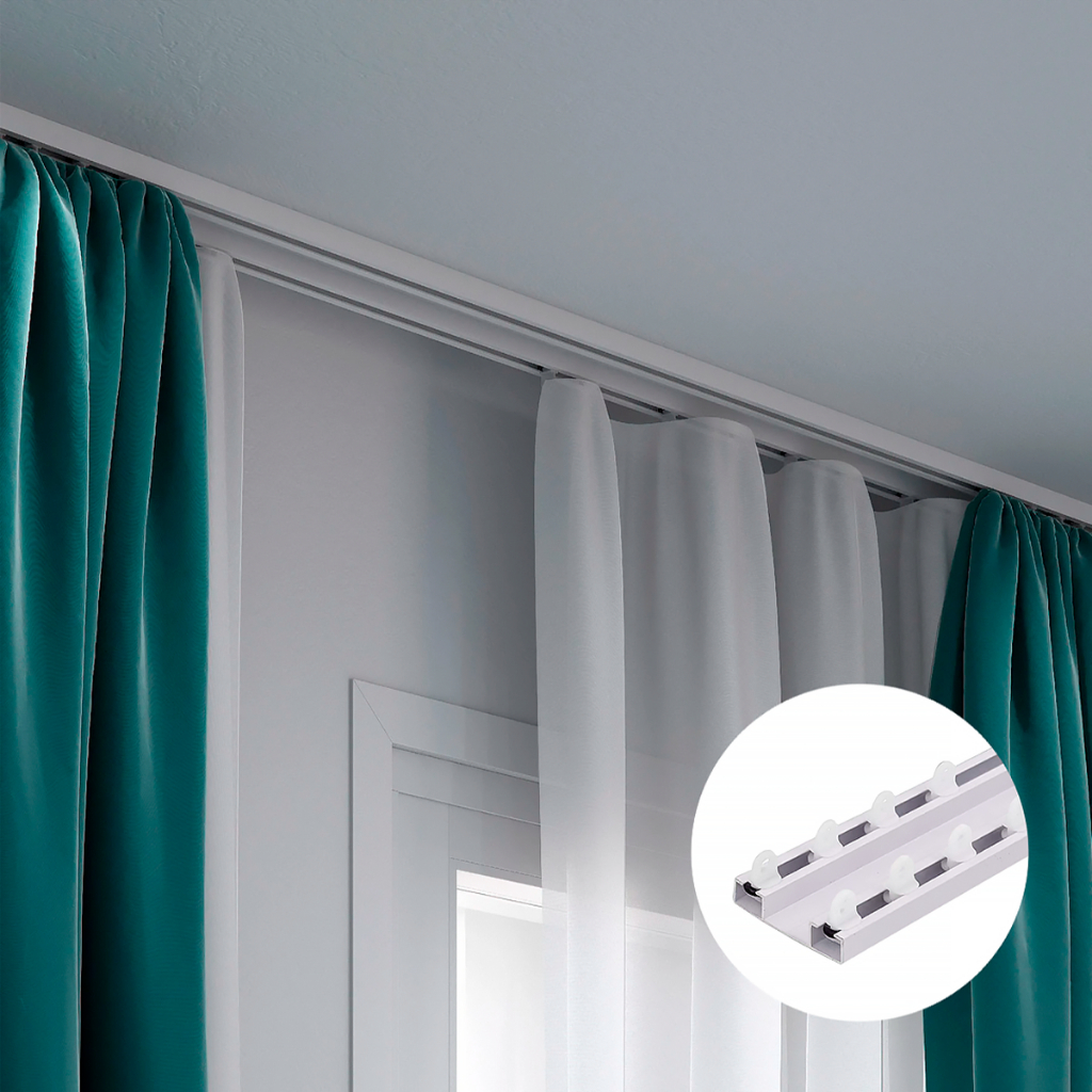 Trilho Suíço Max Duplo Alumínio Cortina Presilhas 1,5m/ 2m/2,5m/3M/3,5m/4,0m/4,5m/5,0m/6,0m