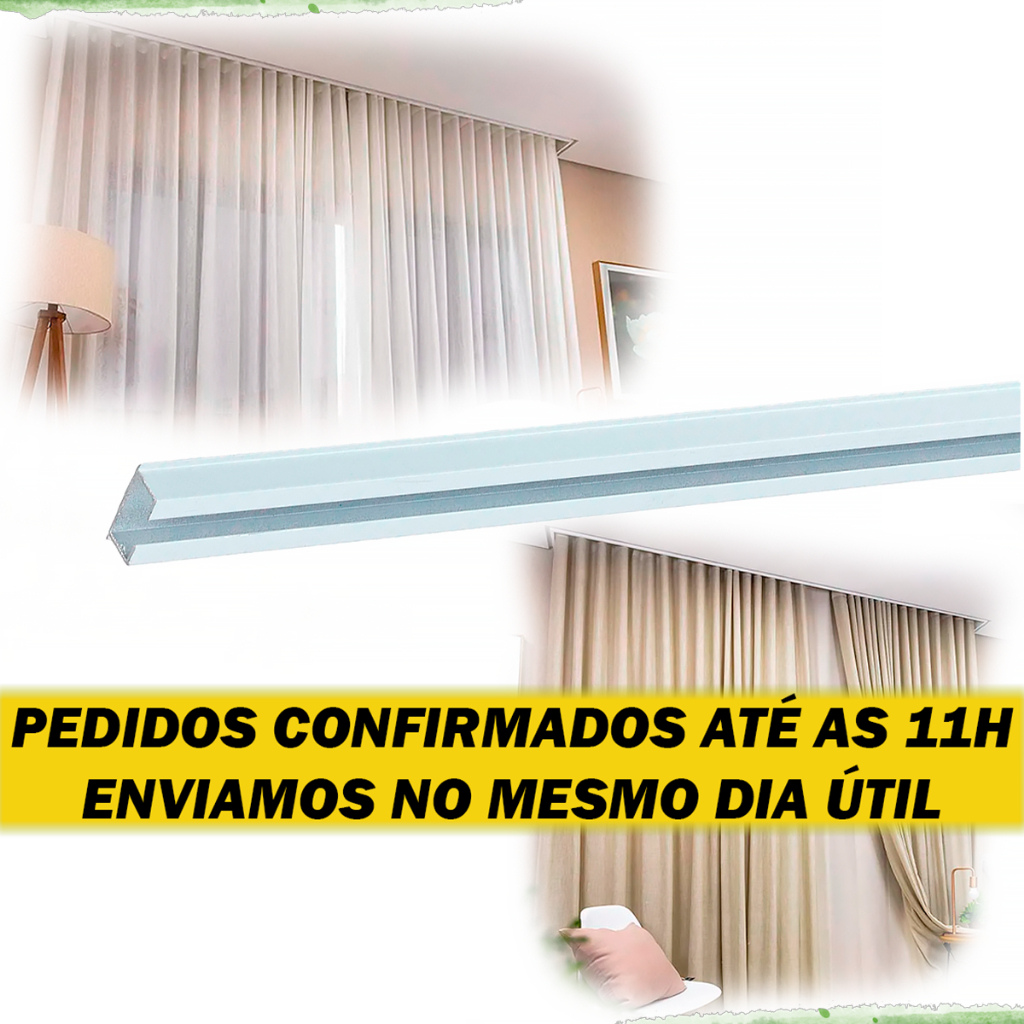 ENVIAMOS NO MESMO DIA EM COMPRAS ATÉ 11 HORAS EM DIAS ÚTEIS Kit enviado com 3 barras de 1 metro cada. Acompanha 30 deslizantes e 6 terminais. Pronto para instalar. Necessário parafusos de teto (Dependendo do seu teto você utilizará um tipo específico de parafuso). Como escolher trilho para cortina? Para escolher o tamanho, tenha a medida exata de onde você gostaria de instalar o trilho. No caso de janelas, deixe um espaço de aproximadamente 20 centímetros para cada lado. Mas se a sua opção for fazer a parede toda com cortinas, a medida precisa ser correta. O trilho suíço simples é indicado para locais onde será utilizada apenas uma cortina, seja ela fina ou grossa. Para ambientes com a necessidade de combinar a cortina e um blackout, o modelo duplo é o mais indicado, pois permite a fixação das duas peças separadamente. 1. Reúna as ferramentas e materiais necessários, incluindo o trilho suíço, suportes de fixação, parafusos, buchas de parede ou gesso e uma furadeira. 2. Meça a largura da janela ou do espaço onde a cortina será instalada e marque a posição do trilho na no teto ou no gesso. 3. Usando a furadeira, faça furos no teto nos pontos marcados para os suportes de fixação ou diretamente como no vídeo. 4. Insira as buchas de parede nos furos e, em seguida, parafuse os suportes de fixação no lugar. 5. Encaixe o trilho suíço nos suportes de fixação e verifique se está nivelado. 6. Se necessário, ajuste a posição dos suportes de fixação para garantir que o trilho esteja nivelado e seguro. 7. Certifique-se de que o trilho deslize suavemente pelos suportes de fixação. 8. Prenda as cortinas nos ganchos ou deslizadores do trilho suíço, conforme as instruções fornecidas com o trilho. 9. Verifique se as cortinas estão penduradas corretamente e se abrem e fecham sem problemas. Lembre-se de sempre seguir as instruções específicas do fabricante do trilho suíço e, se necessário, buscar a ajuda de um profissional qualificado para garantir uma instalação segura e adequada. 1. Durabilidade: O alumínio é um material resistente e durável, tornando os trilhos suíços de alumínio uma opção confiável e de longa duração. Eles são menos propensos a deformações e corrosão, o que significa que podem suportar o uso diário e condições ambientais adversas. 2. Leveza: O alumínio é um material leve, o que facilita a instalação dos trilhos suíços. Essa característica também garante um deslizamento suave e fácil das cortinas ao longo do trilho. 3. Versatilidade: Os trilhos suíços de alumínio estão disponíveis em uma variedade de modelos e tamanhos, permitindo que sejam adaptados a diferentes tipos de janelas e estilos de cortinas. Além disso, eles podem ser facilmente cortados e ajustados conforme necessário. 4. Estética: O trilho suíço de alumínio possui um design elegante e discreto, que se integra bem a vários estilos de decoração. 5. Manutenção fácil: Os trilhos suíços de alumínio são fáceis de limpar e exigem pouca manutenção. Um pano úmido é suficiente para remover poeira e sujeira ocasional. Além disso, sua resistência à corrosão significa que eles não precisam ser substituídos com frequência. Ao considerar a compra de trilhos suíços de alumínio, lembre-se de avaliar suas necessidades específicas, como o tamanho da janela, o peso da cortina e a forma de instalação, para escolher o modelo adequado. Varão para Cortina, Acessórios, Kit, Suporte, Ponteira, Abraçadeira, Kit Varão Cortina Completo, 2 metros, 1 metro, 4 metros, 1,5m, 3 Metros, Reibraz, trilho suíço para cortina, tipos de trilhos para cortinas, deslizante, terminal, parada, maxxi, melhores marcas de trilhos suíços, como instalar trilho suíço para cortina, cortina de teto, motorizado, onde comprar trilho suíço para cortina, vantagens do trilho suíço, como escolher trilho para cortina, trilho suíço preço, trilho branco, cortina wave