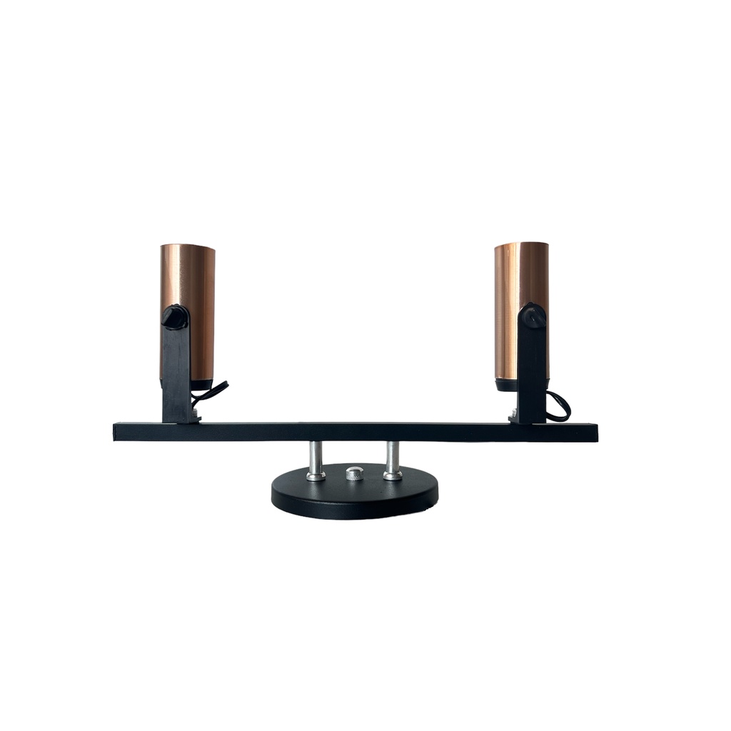 Cor : Preto com Cobre Tamanho do trilho : 36 cm Voltagem: Bivolt Spot: Fino Trilho e canopla: Alumínio Capacidade de lâmpadas: 2 Tipos de soquetes: E27 Modelo de Lâmpada: E27, led ou comum O Spot Trilho é o ideal para quem busca uma iluminação mais focada, direta para um determinado ponto. Podem ser instaladas em tetos ou paredes, sendo os direcionáveis, o que possibilita uma melhor iluminação. Não acompanha as lampadas